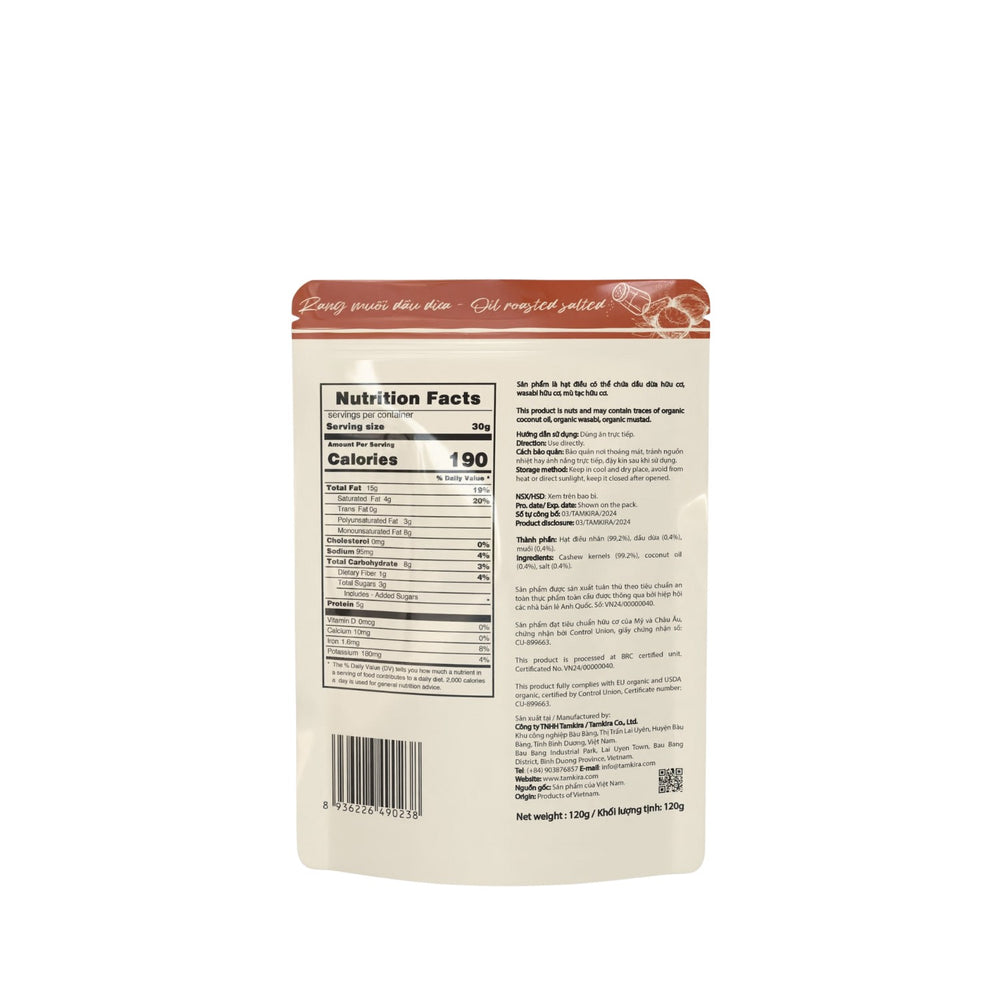 A mild salty flavor blended with natural richness and a hint of tropical coconut, crunchy with every bite. You'll feel the difference from the first taste – a delicate saltiness that melts on your tongue, followed by a rich, nutty, and intensely aromatic cashew flavor